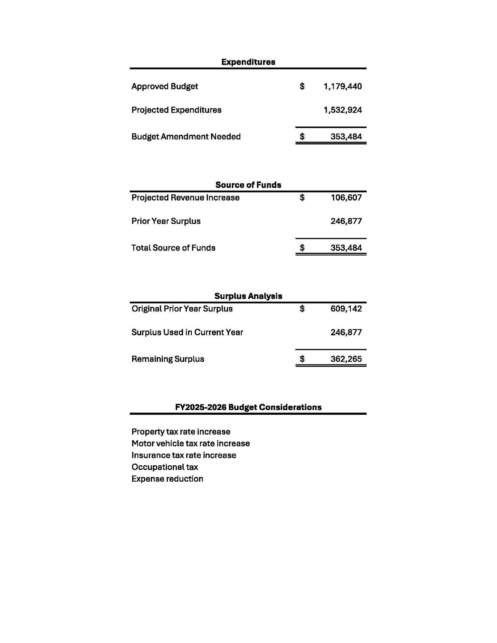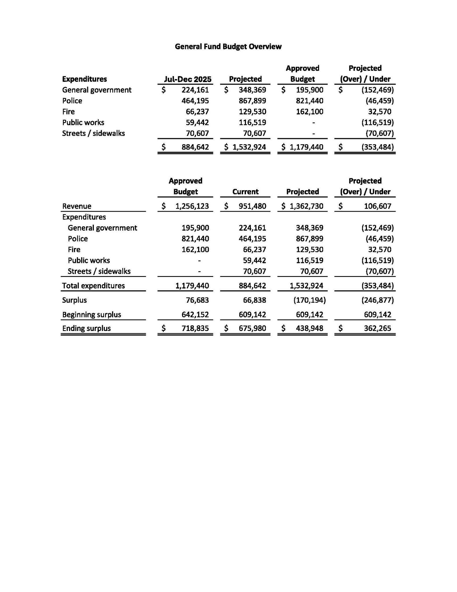 That shortfall must be covered by dipping into reserves, cutting future spending, or raising revenue. A deficit reduces the General Fund balance.